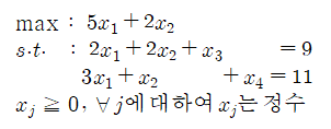 그런데 생각해봅시다 저번에 풀었던 배낭문제는 결국 하냐 안하냐로 귀결되는 정수계획법의 한 분야인 0-1계획법 문제였습니다. 그러면 다른 정수계획법 문제에 분지절단법을 적용하려고 하면 어떻게 될까요??